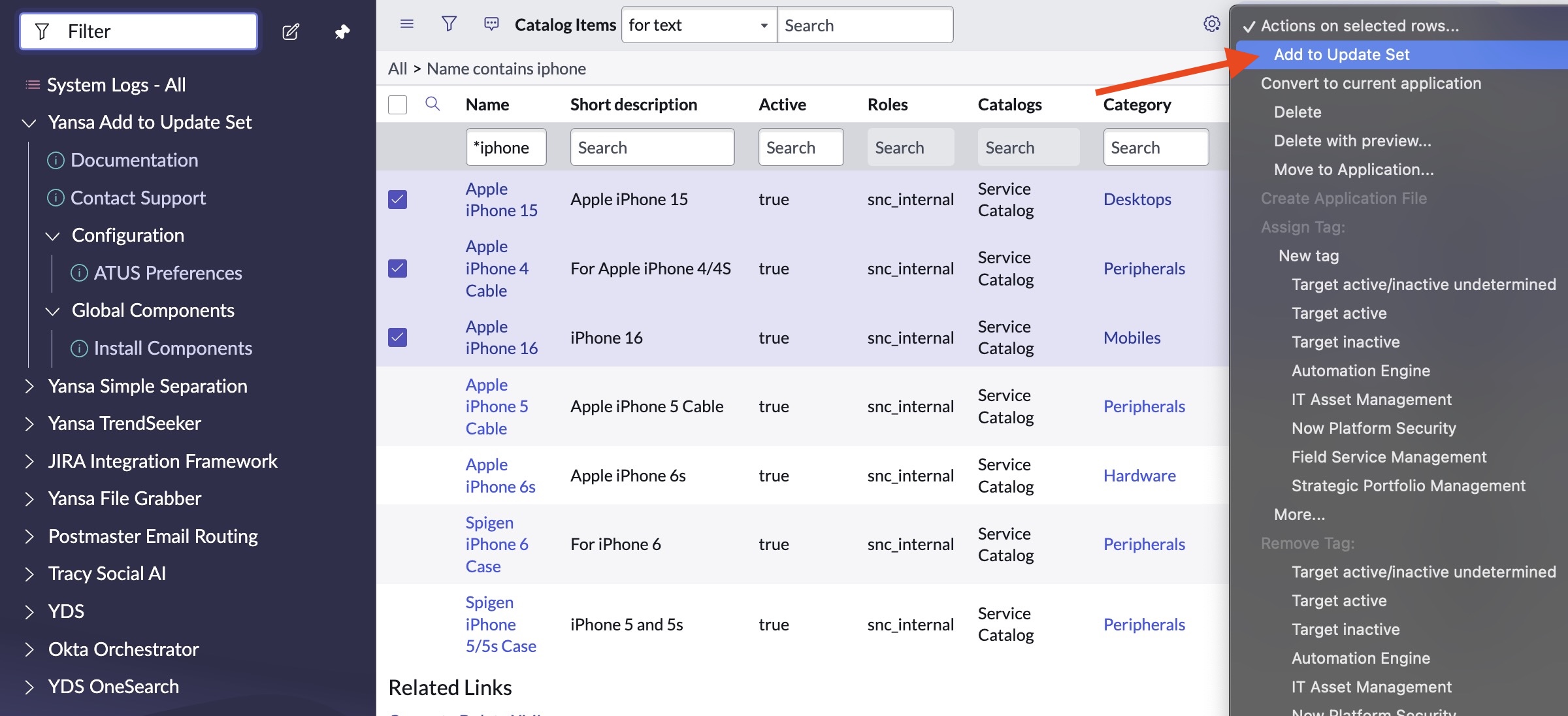 Add to Update Set is a utility for ServiceNow admins that will add any record (plus attachments, translations, and many dependencies) to the active update set.