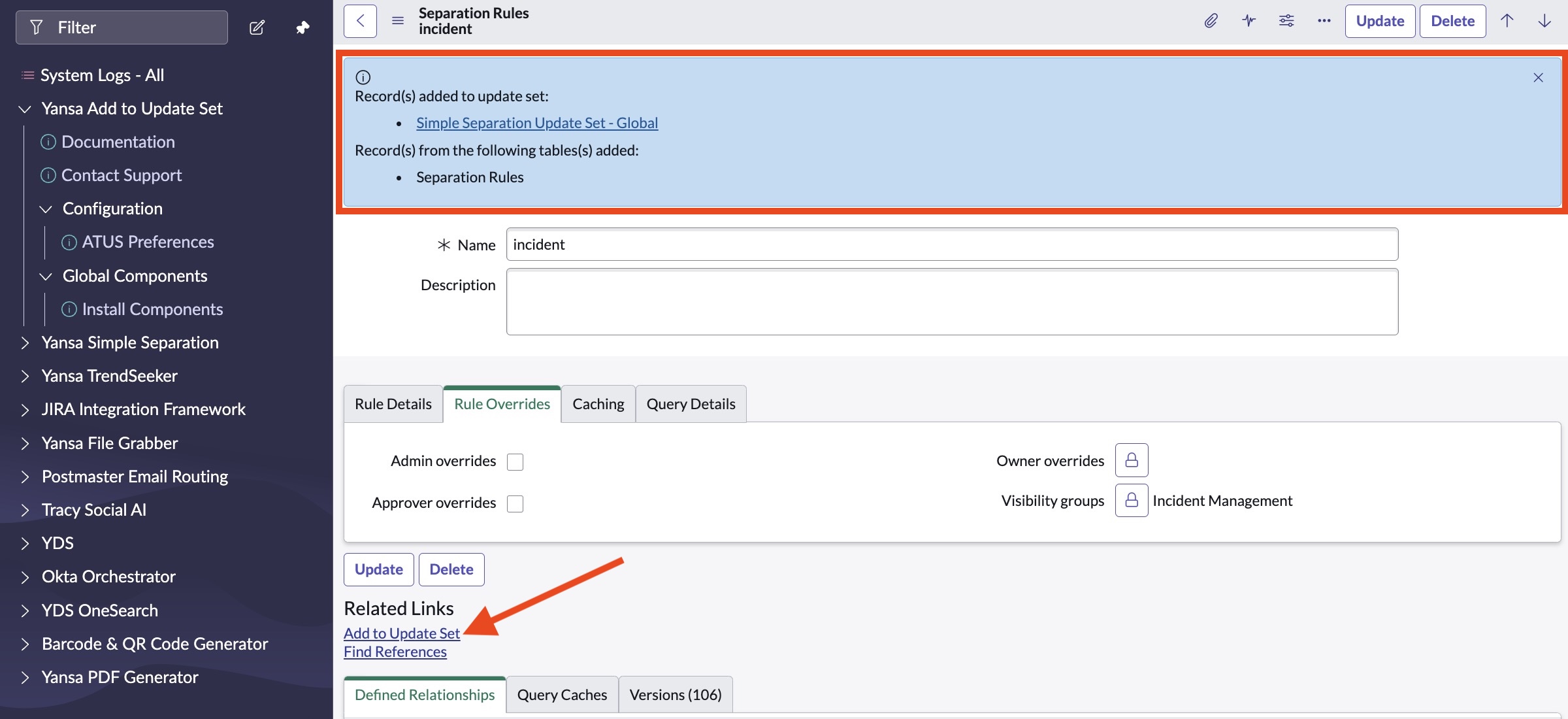 <figure><img src="https://1673435542-files.gitbook.io/~/files/v0/b/gitbook-x-prod.appspot.com/o/spaces%2FUWyRiPuvsb7Ak8LZh88n%2Fuploads%2FrgPd1eta5K4RD41q9nK2%2FAdd%20Single%20Record%20to%20Update%20Set.jpg?alt=media&#x26;token=ecb32b50-d7e1-4f0d-babc-7d7db65c46ca" alt=""><figcaption><p>Add a Single Record to Update Set</p></figcaption></figure>
