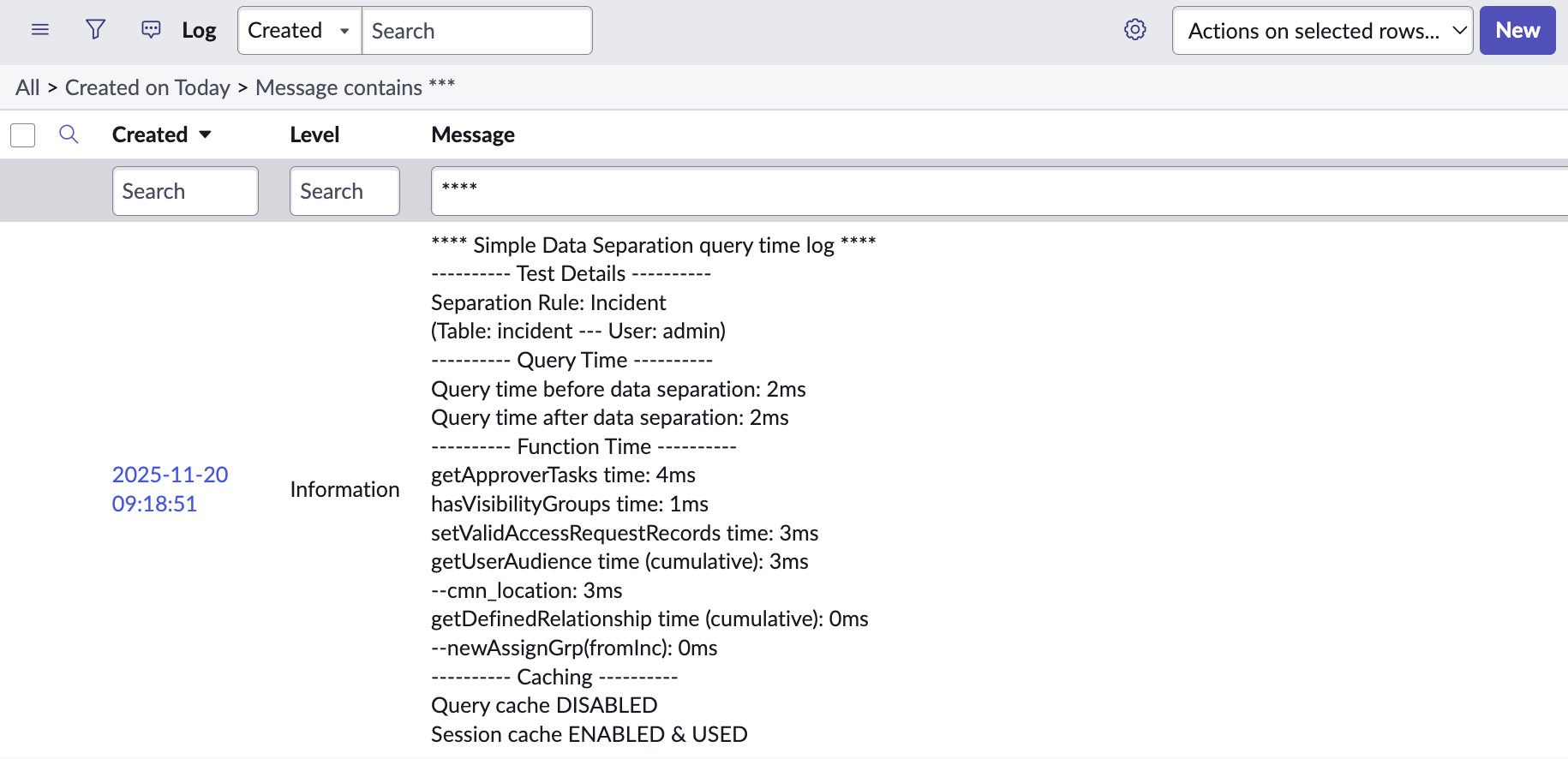 <figure><img src="https://3608496382-files.gitbook.io/~/files/v0/b/gitbook-x-prod.appspot.com/o/spaces%2FFWzDVFtUmUZRWKbnGTMs%2Fuploads%2FlOTSRS6Z15gwZsxZKiOt%2F007.png?alt=media&#x26;token=bdf6d52b-a740-4fdc-a148-80c6abd6b7be" alt=""><figcaption><p>Log query time on Separation Rule</p></figcaption></figure>